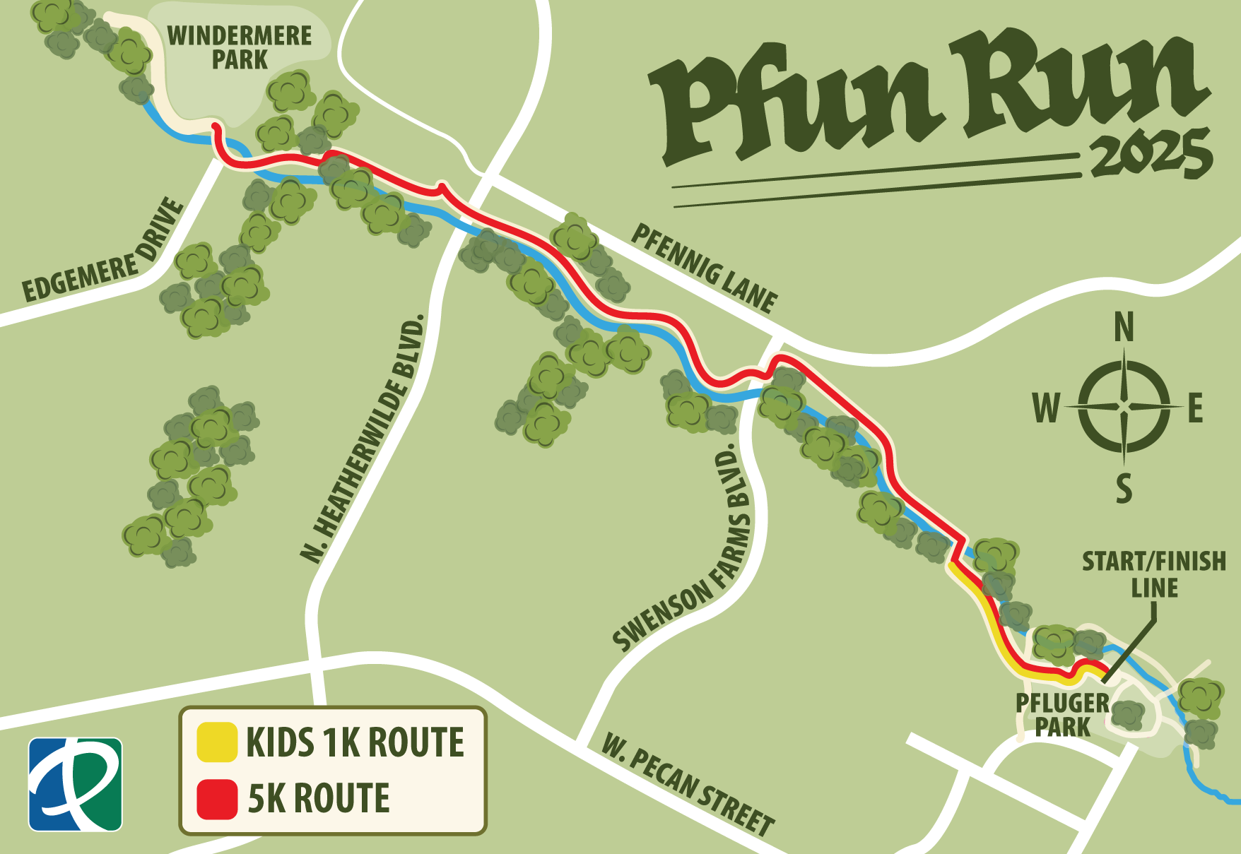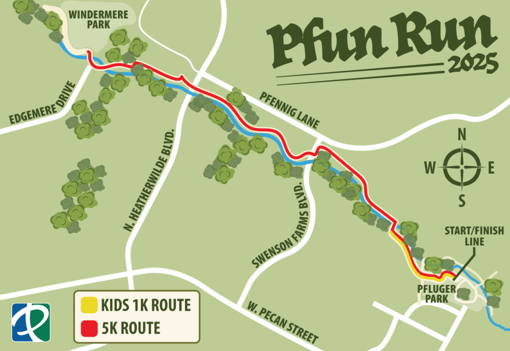 • NEW – Course: The course follows an out-and-back layout, starting at Pfluger Park, following the